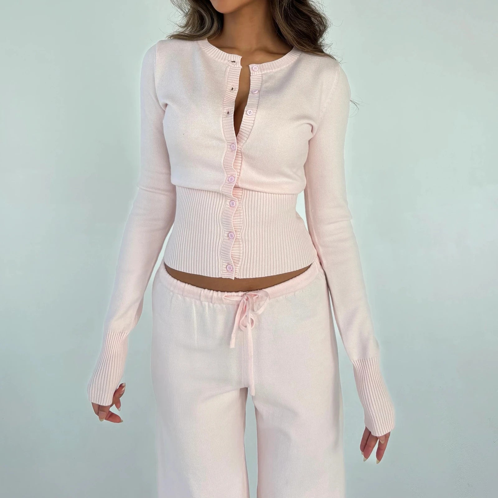 Women's Fall Knit Cardigan Solid Color Long Sleeve Round-Neck Slim Fit Button Down Tops